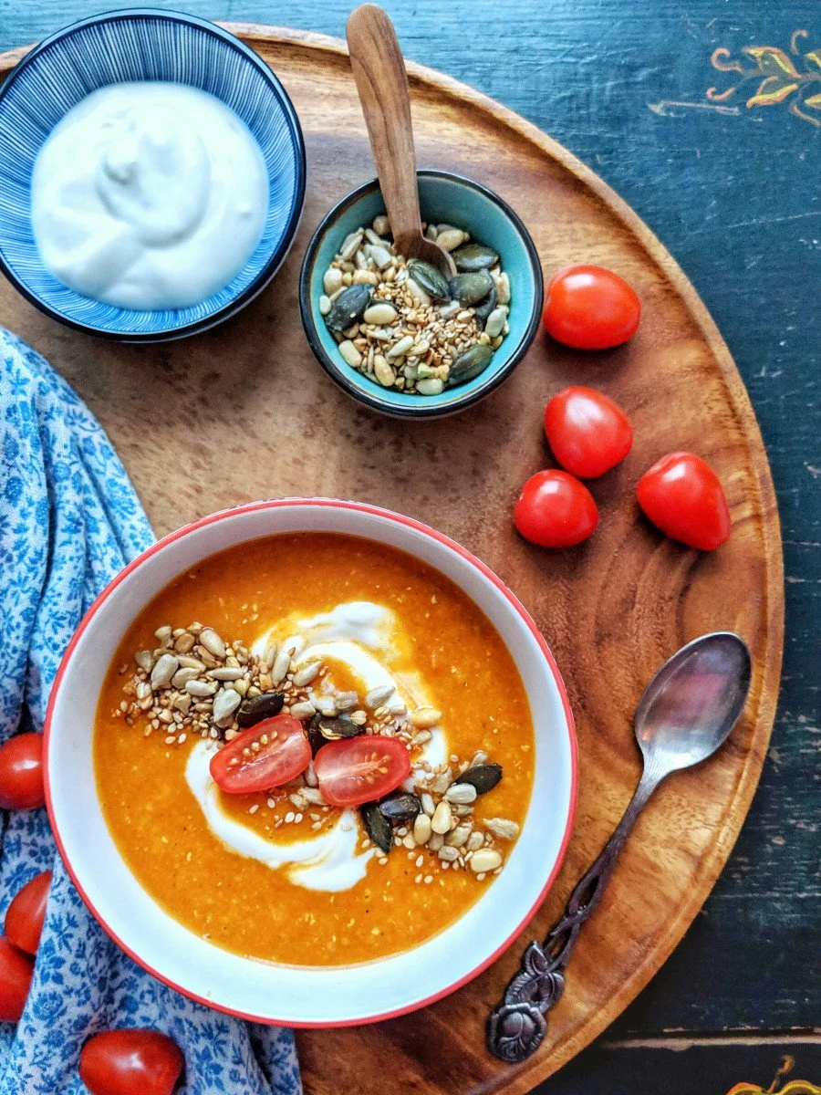 Heute bekommst du von mir ein leckeres Süppchen serviert. Und zwar eine orientalische Linsensuppe mit Paprika, Tomaten & Ingwer um genau zu sein.