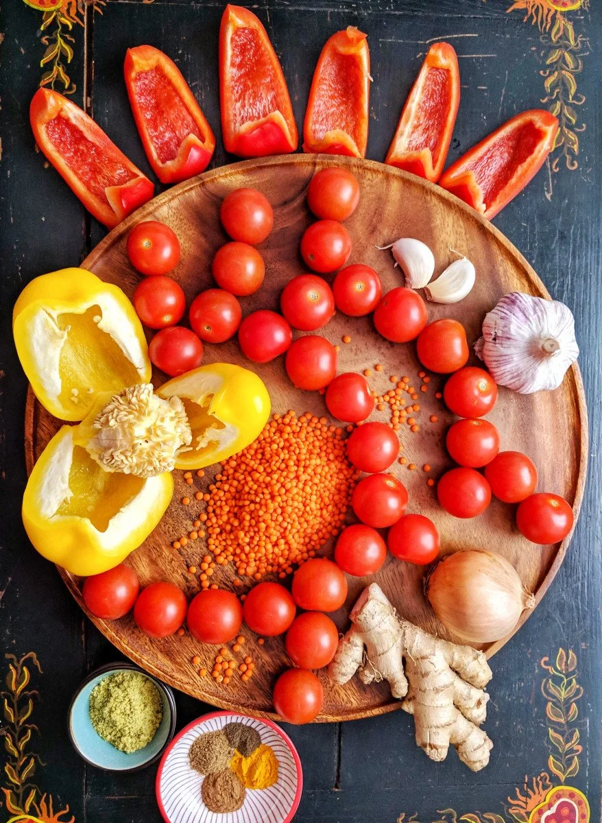 Orientalische Linsensuppe mit Paprika, Tomaten & Ingwer