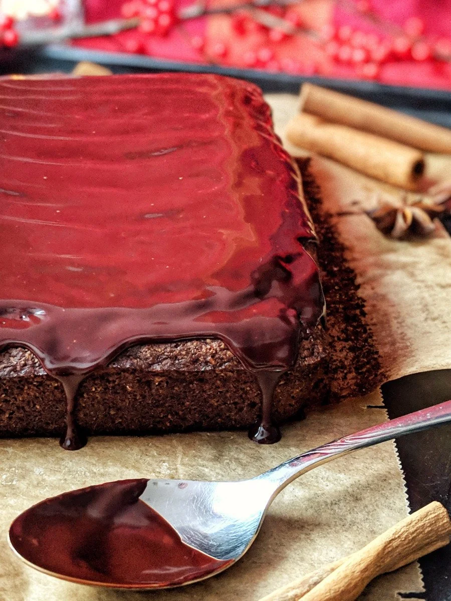 Für mich hat dem Lebkuchenkuchen letztes Jahr noch irgendwie das gewisse Etwas gefehlt, um ihn perfekt zu machen. Heute wird er deshalb in cremige Zartbitter-Schokoladen-Ganache gehüllt. Das klingt nicht nur verführerisch. Es duftet auch himmlisch und beschert dir beim Probieren diesen perfekten Augen-zu-und-hmmmm-Moment.