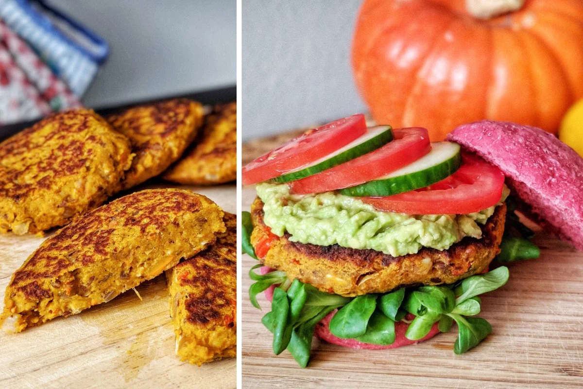 Herbstliche Kürbis-Veggie-Burger, die jeden Burger-Fan überzeugen.