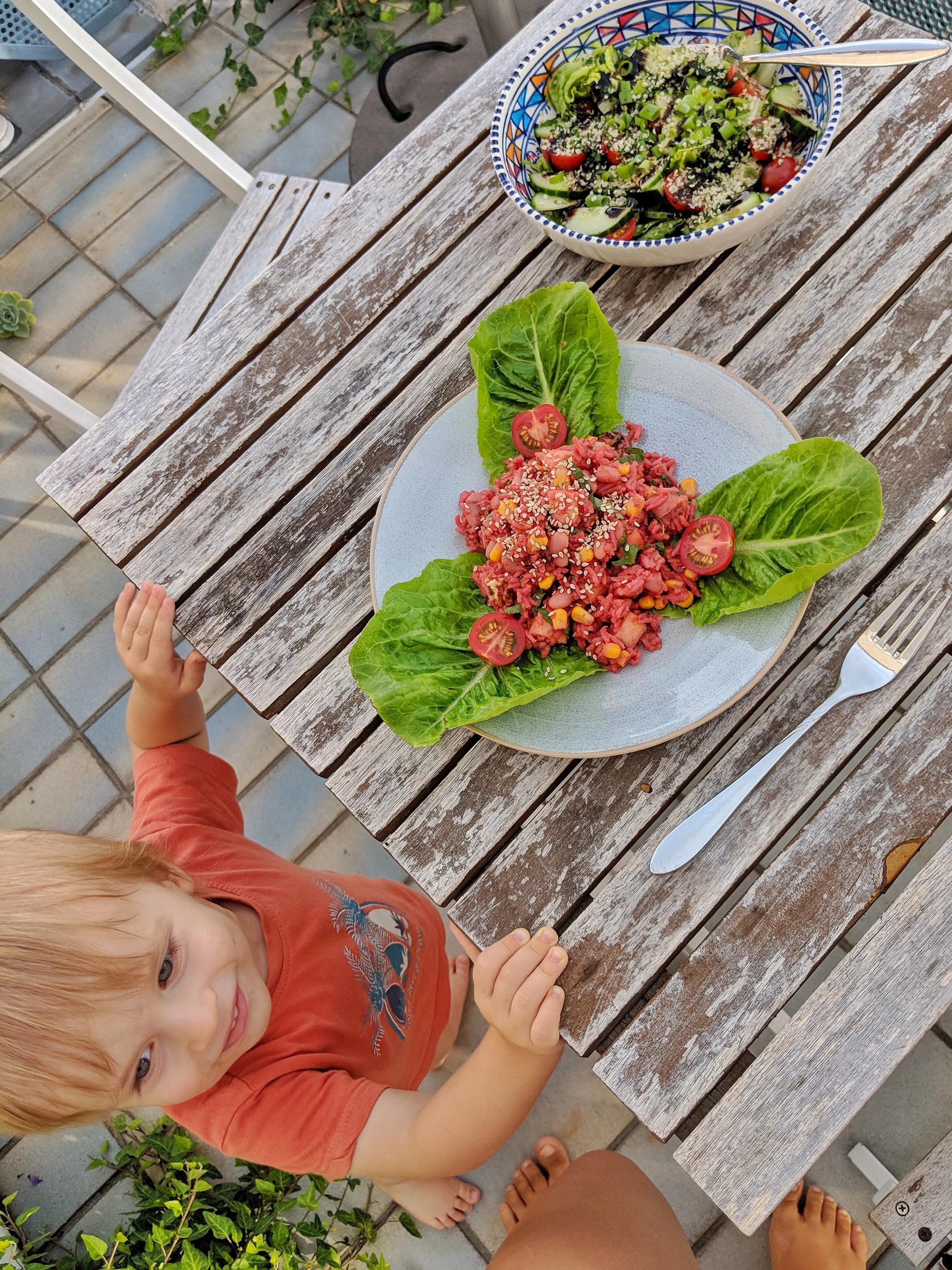 Kleine Helfer mögen den Salat auch sehr gern 😋