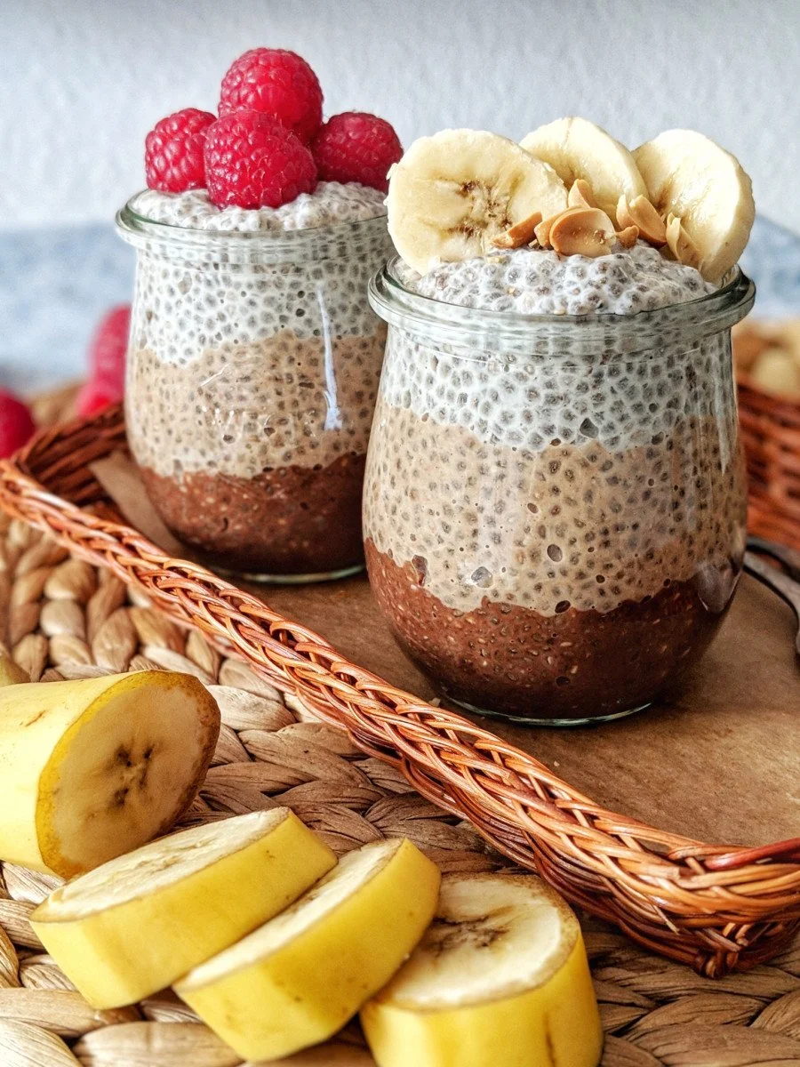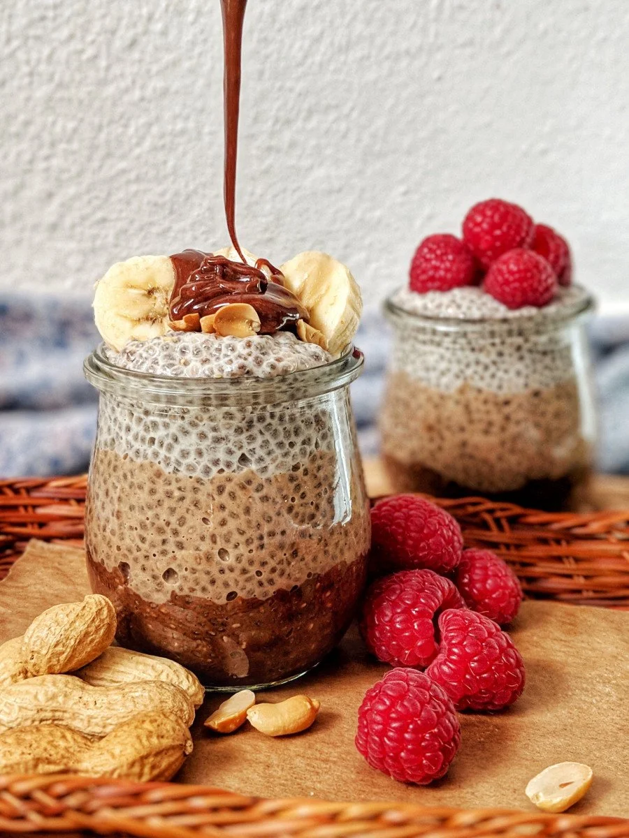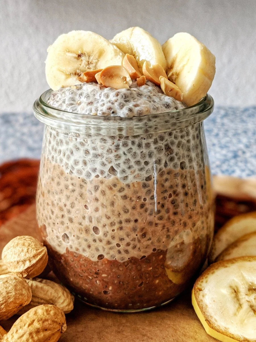 Köstlicher Chiapudding mit Erdnuss- & Schokoladengeschmack.