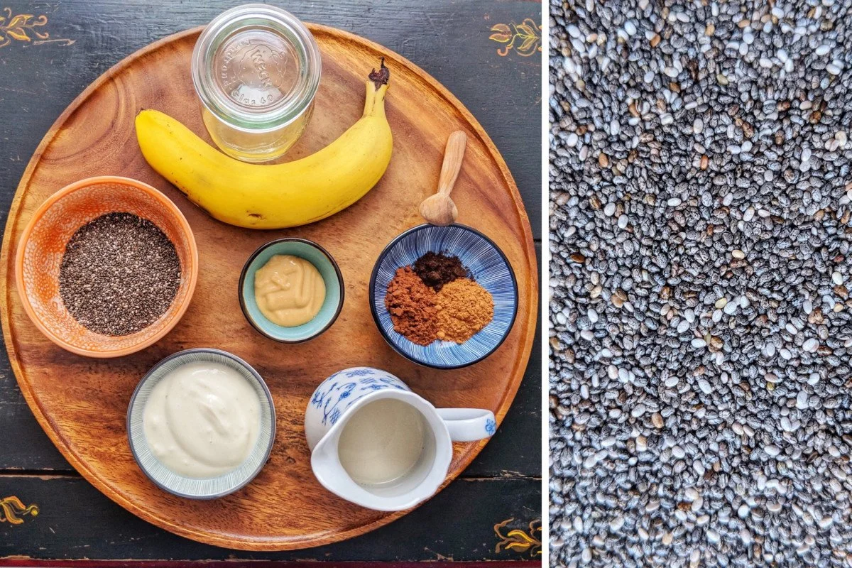 Zutaten für Erdnuss-Schoko-Chiapudding