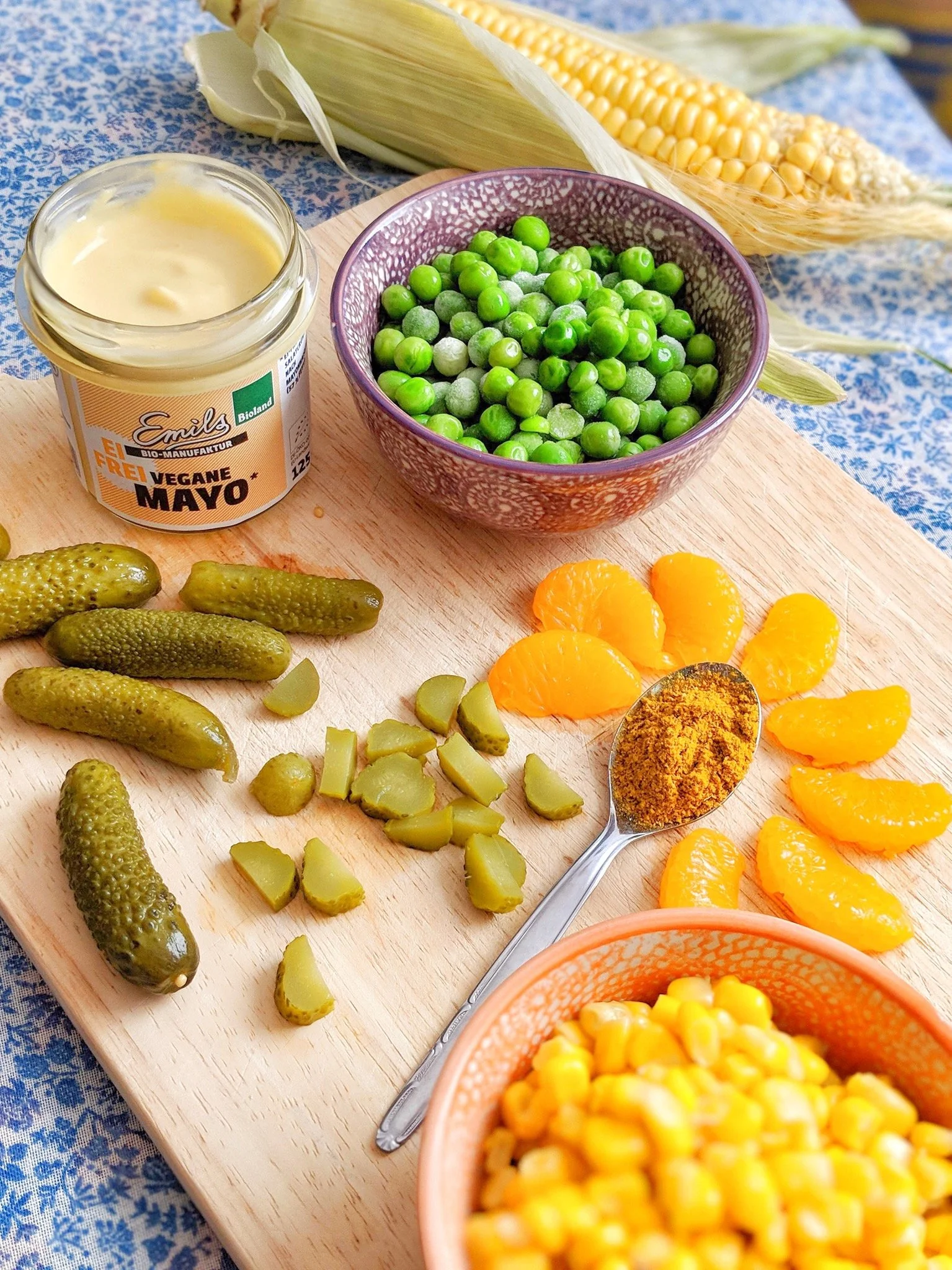 Der „original“ Nudelsalat war damals weder vegan noch vegetarisch, da er mit normaler Mayonaise und Fleischwurst zubereitet war. Als ich dann vor einigen Jahren meine Ernährungsweise änderte, habe ich das Rezept einfach angepasst und so lange gebastelt, bis der Nudelsalat perfekt für mich war.