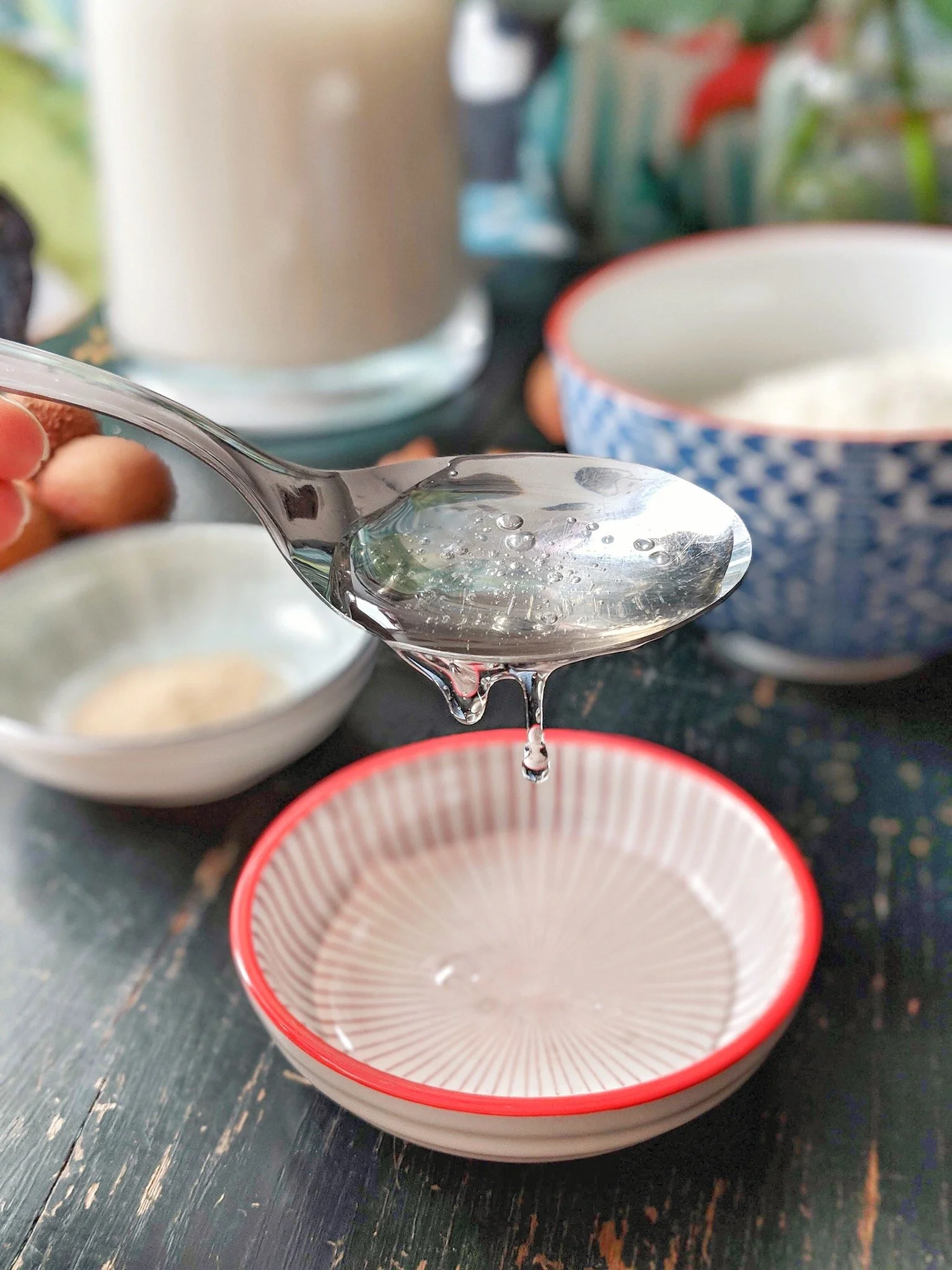 Damit der Milchreis seine schöne weiße Farbe behält, habe ich mich heute für Reissirup entschieden. Wenn es dich nicht stört, dass dein Milchreis einen etwas karamelligen Farbton bekommt, kannst du natürlich auch Ahornsirup verwenden.