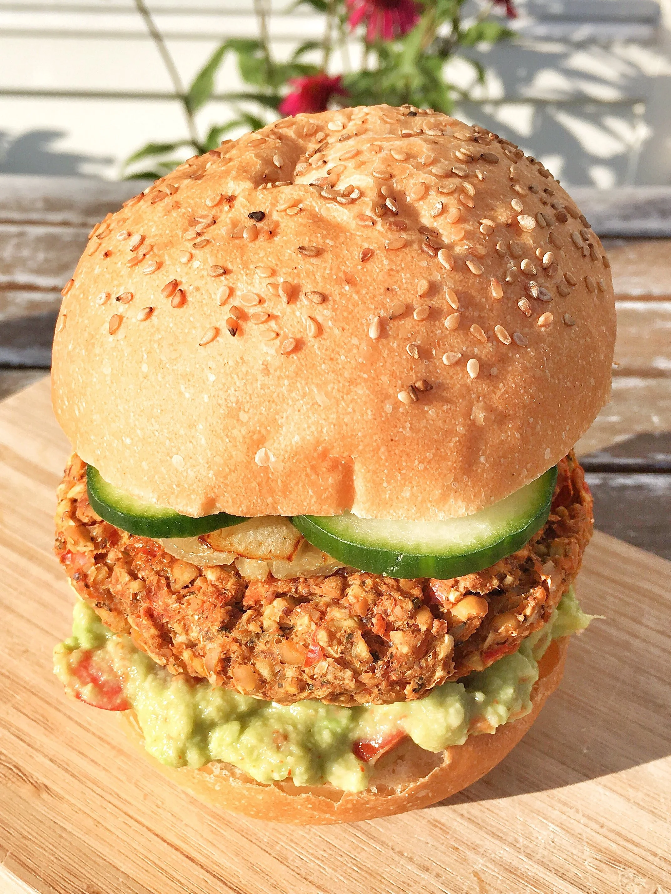 Während die Patties backen, kannst du wunderbar schon mal den Salat, die Pasta, die Sauce, etc. zubereiten, was auch immer es als Beilage zu den Patties geben soll. Oder du machst es wie ich: schnippelst ein paar Gurken- und Tomatenscheiben, machst dir cremige Guacamole und genießt deine Patties als Veggie-Burger. 🍔💚