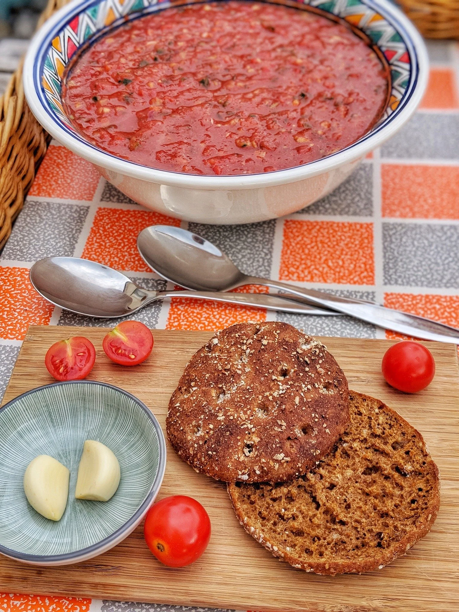 Wenn das Thermometer über 30°C klettert, suche ich meist nach einer Möglichkeit, für mich und meine Familie etwas Leckeres zu zaubern, ohne langes Kochen. Das Gericht sollte dann erfrischend und nicht zu schwer sein, so wie diese Gazpacho.