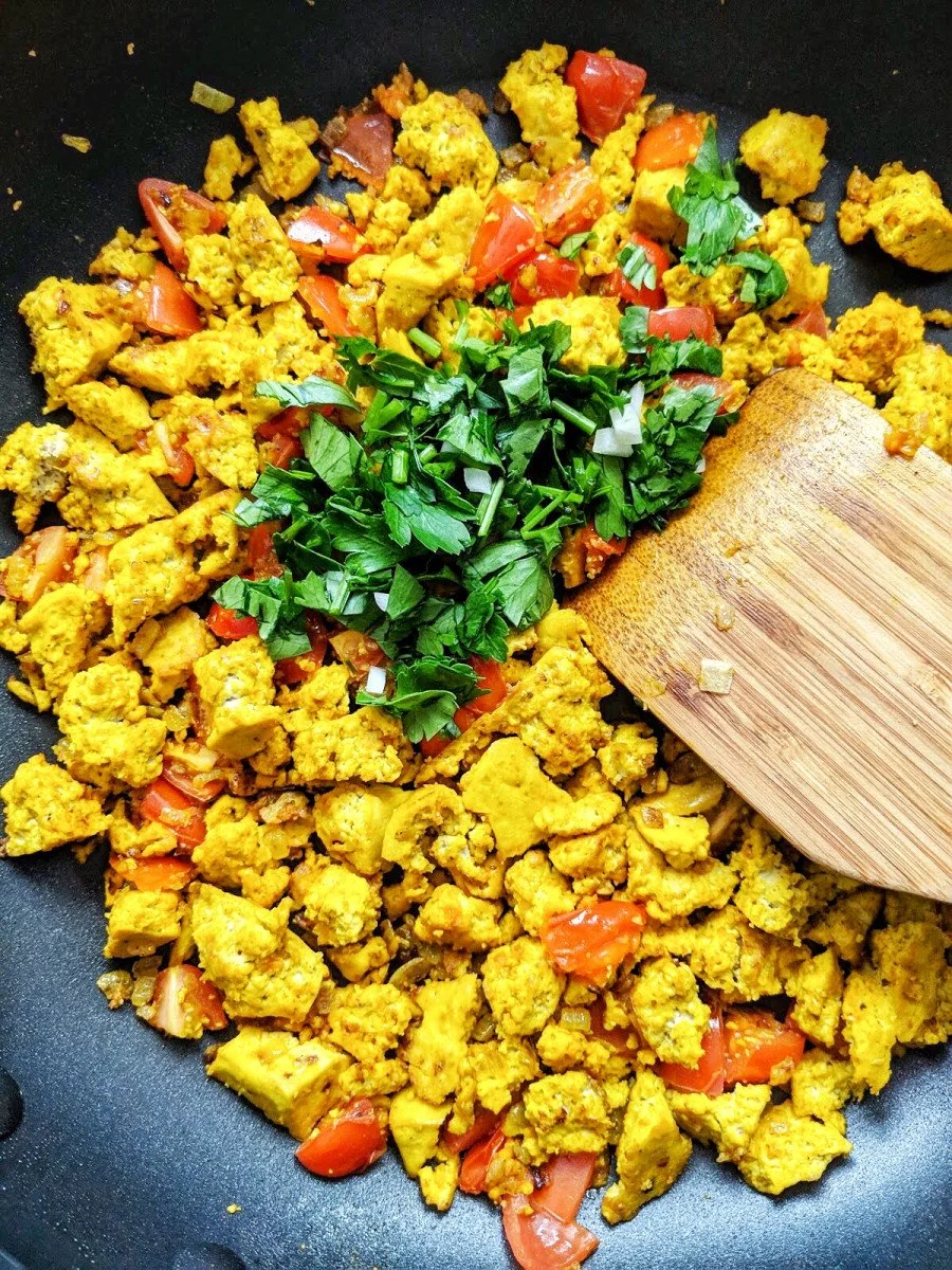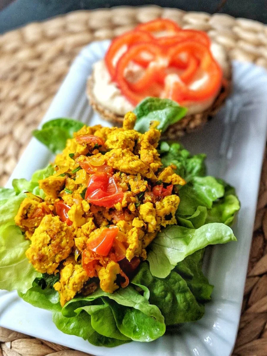 Wenn du es gern ein wenig schärfer magst, streu einfach noch Chiliflocken über den Rührtofu. Ein paar Spritzer Tabasco wirken aber auch Wunder. 🌶