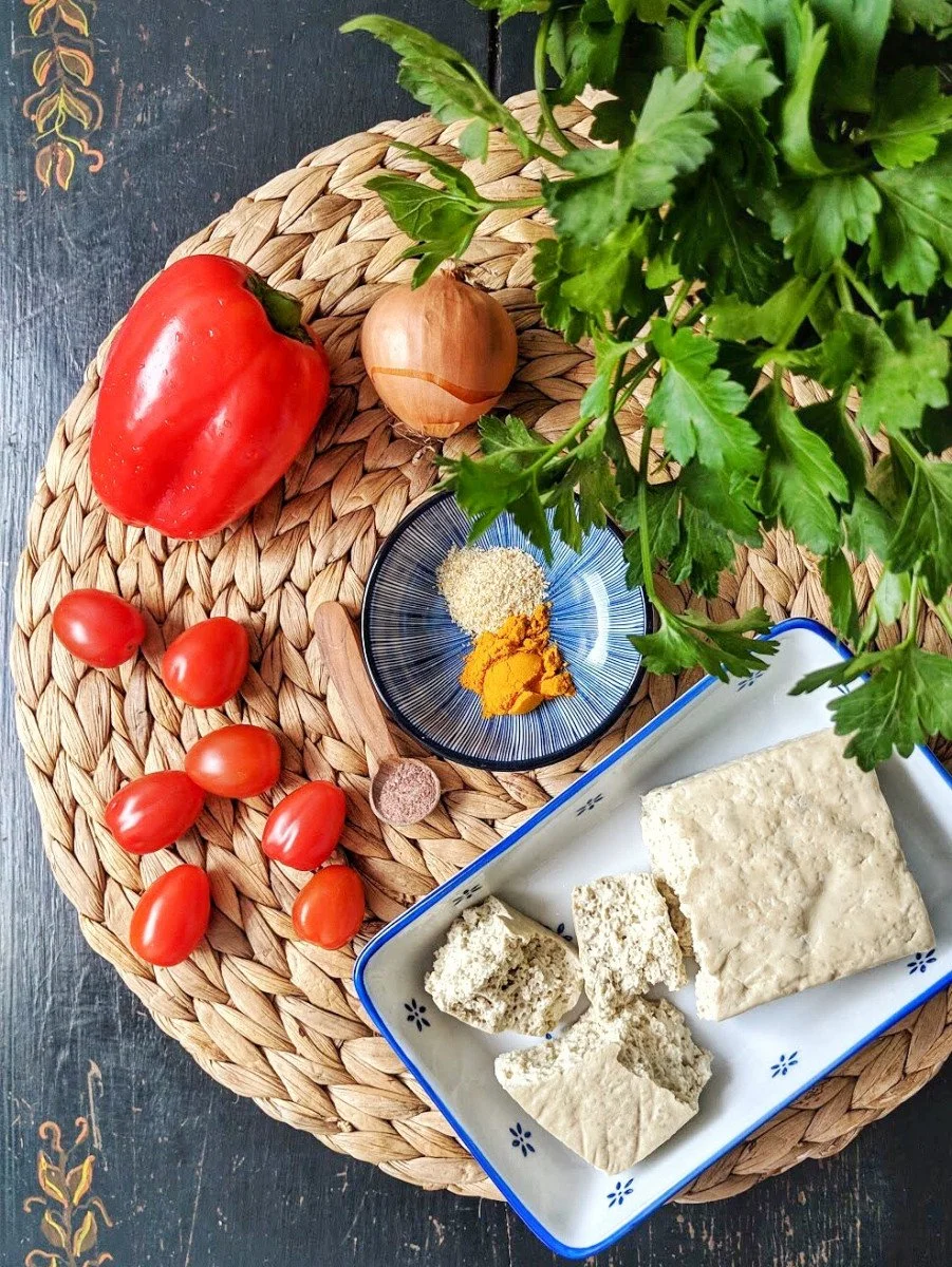 Zutaten für veganes Frühstücks-Sandwich mit Rührtofu