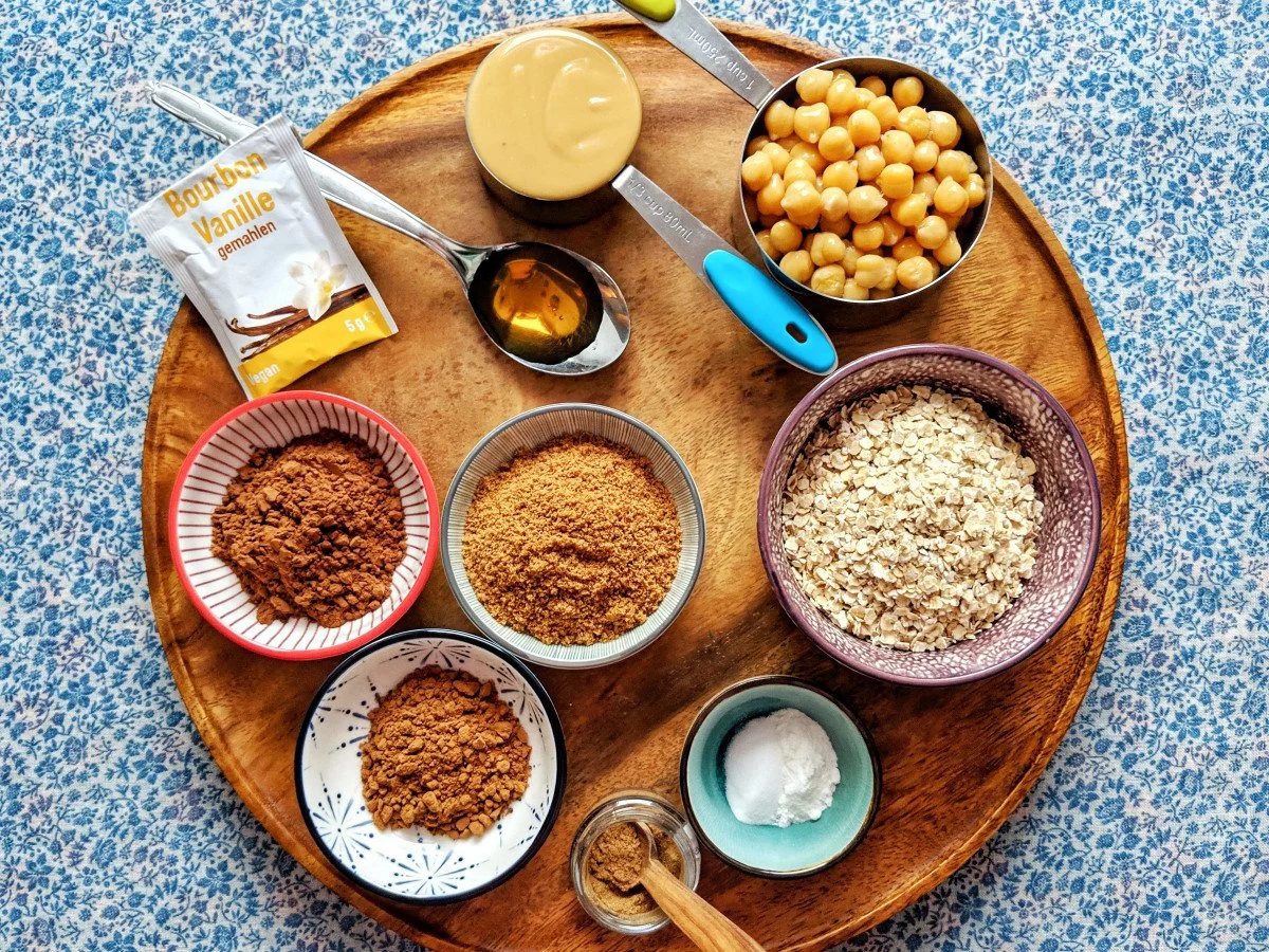 Haferflocken enthalten viele Ballaststoffe & Mineralstoffe wie Magnesium, Eisen & Zink. Kichererbsen liefern viel pflanzliches Eiweiß (7,5 g | 100 g) und ebenfalls Magnesium, Eisen, Kupfer & Vitamin K. Datteln enthalten nicht nur viele Vitamine & Mineralstoffe, sondern sind auch reich an Antioxidantien. Diese können bei der Vorbeugung von Krankheiten wie Diabetes, Herzkrankheiten und Krebs helfen.