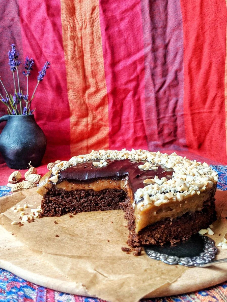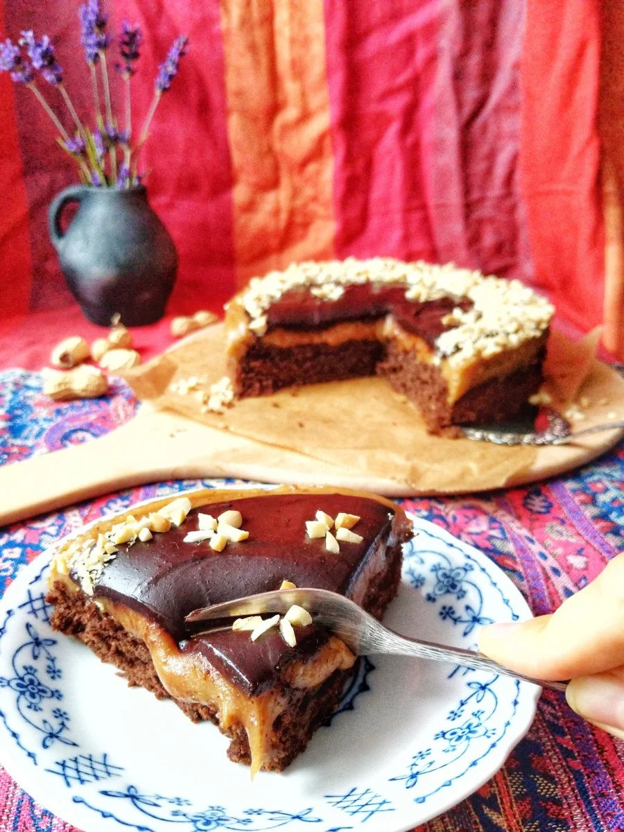 Erdnuss-Karamell-Brownie-Kuchen - vegan & insgeheim gesund