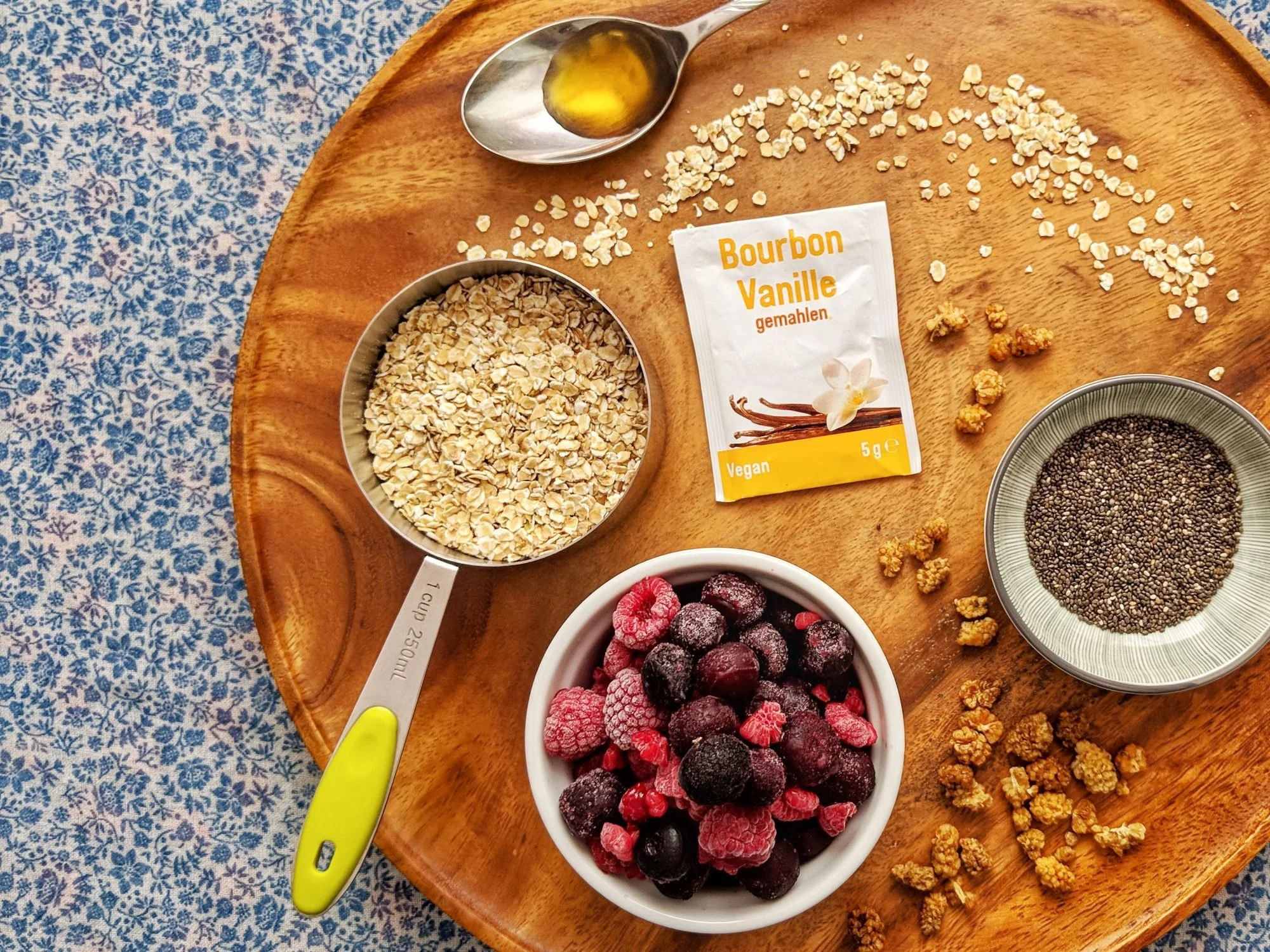 Cremiges Vanille-Porridge mit Chia-Beeren-Kompott