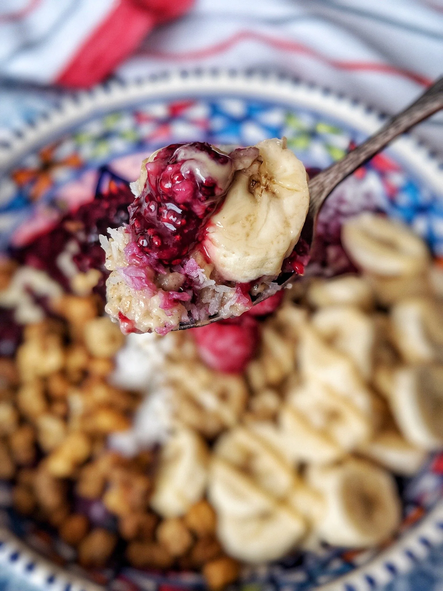 Naja, eigentlich kann man Porridge ja zu jeder Tageszeit essen, finde ich. Ich esse es zur Zeit nämlich liebend gern als schnelles Mittagessen. Es ist wärmend, wunderbar cremig & macht lange satt. Außerdem ist es super schnell zubereitet. Du brauchst nur 7 Zutaten und 10 Minuten später steht schon eine duftig dampfende Schüssel wundervolles Porridge vor dir.