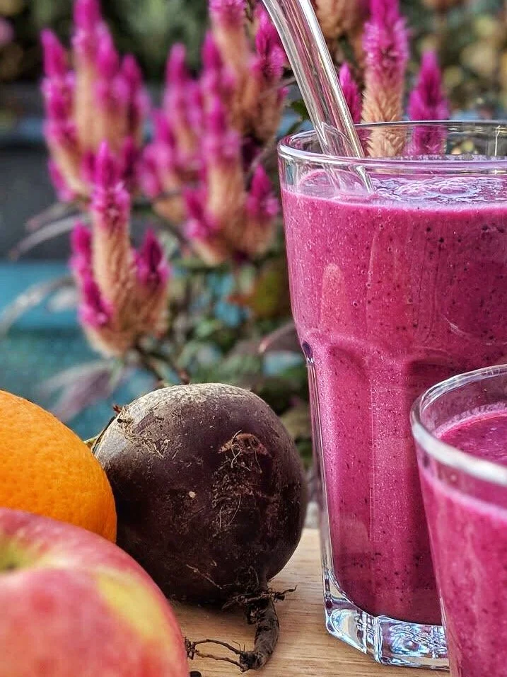 Jeden Morgen trinke ich mit meinem kleinen Sohn zusammen als erstes einen frischen Smoothie. Das ist sozusagen unser Morgenritual und wir freuen uns auch jeden Tag darauf. Wirklich, ich vermisse meinen Smoothie, wenn ich ihn mal nicht trinken kann (z.B. im Urlaub). Meistens sind unsere Smoothies grün (Hallo Grünkohl, Schwarzkohl, Spinat & Co. 💚), aber dieses besonders schöne Exemplar hat ein leuchtendes Magenta und ist der perfekt farbenfrohe Start in den Tag.