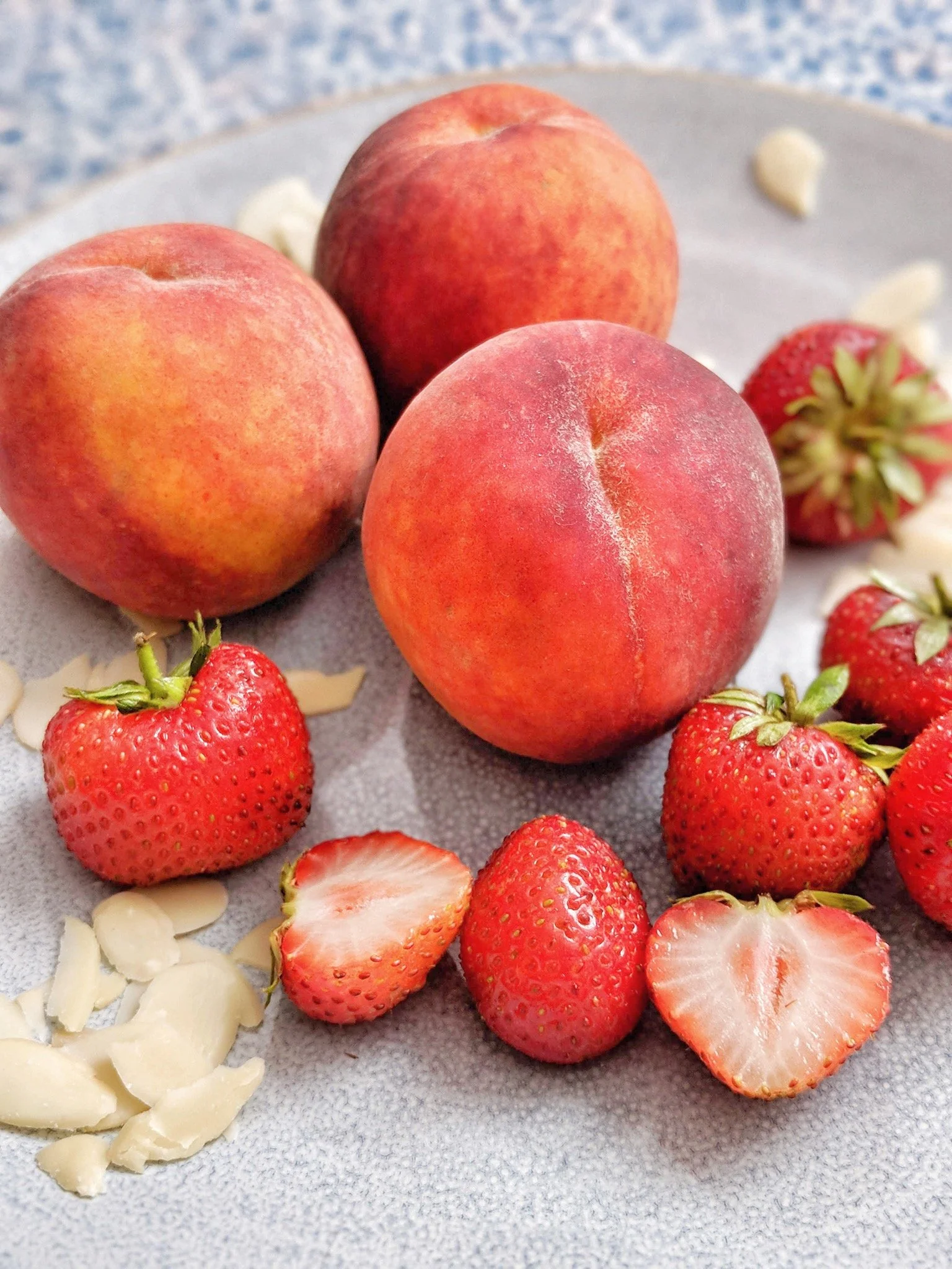 Heute habe ich unter anderem zuckersüße Erdbeeren (wahrscheinlich die letzten für dieses Jahr 😭) und saftige Pfirsiche ergattert. Und was macht man am besten damit? Natürlich schnell eine leckere Galette backen. 😊