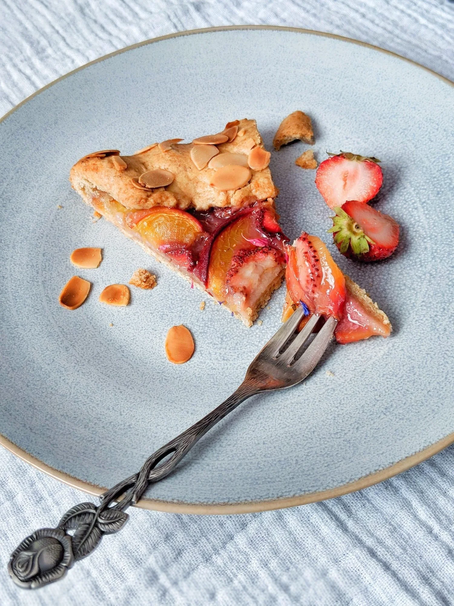 Jetzt ist die Galette genau nach meinem Geschmack. 💚 Sie wäre aber bestimmt auch mit anderem Obst sehr lecker, z.B. Zwetschgen oder Äpfeln. Das werde ich im Herbst dann mal ausprobieren.