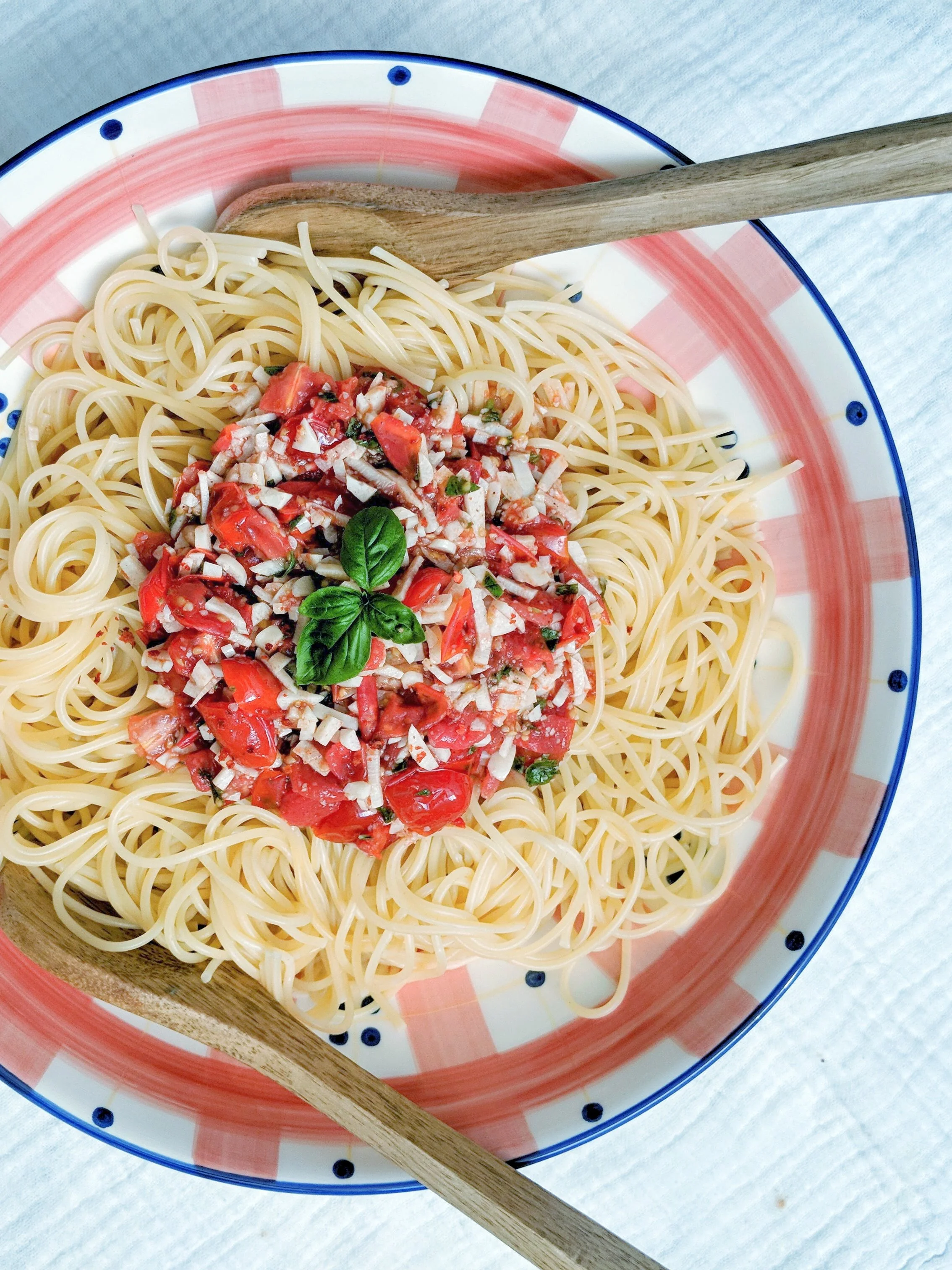 Manchmal ist Spaghetti essen wie ein Kurzurlaub in Italien. Du sitzt auf deinem Balkon oder im Garten, die Abendsonne scheint warm auf deine Haut, die Vögel zwitschern, der Wind rauscht in den Bäumen und vor dir auf dem Tisch steht eine große Schüssel mit frischer, dampfender Pasta.