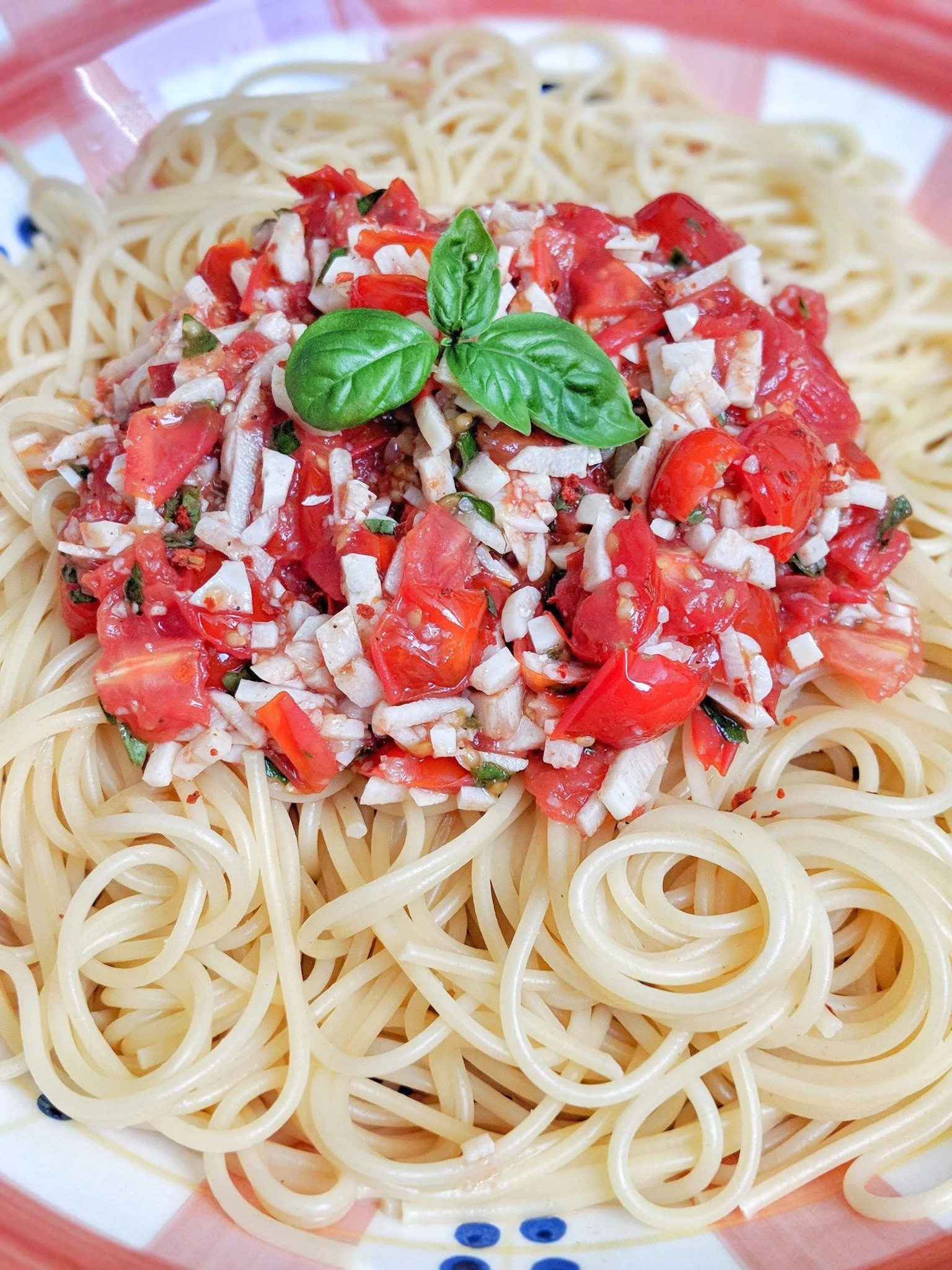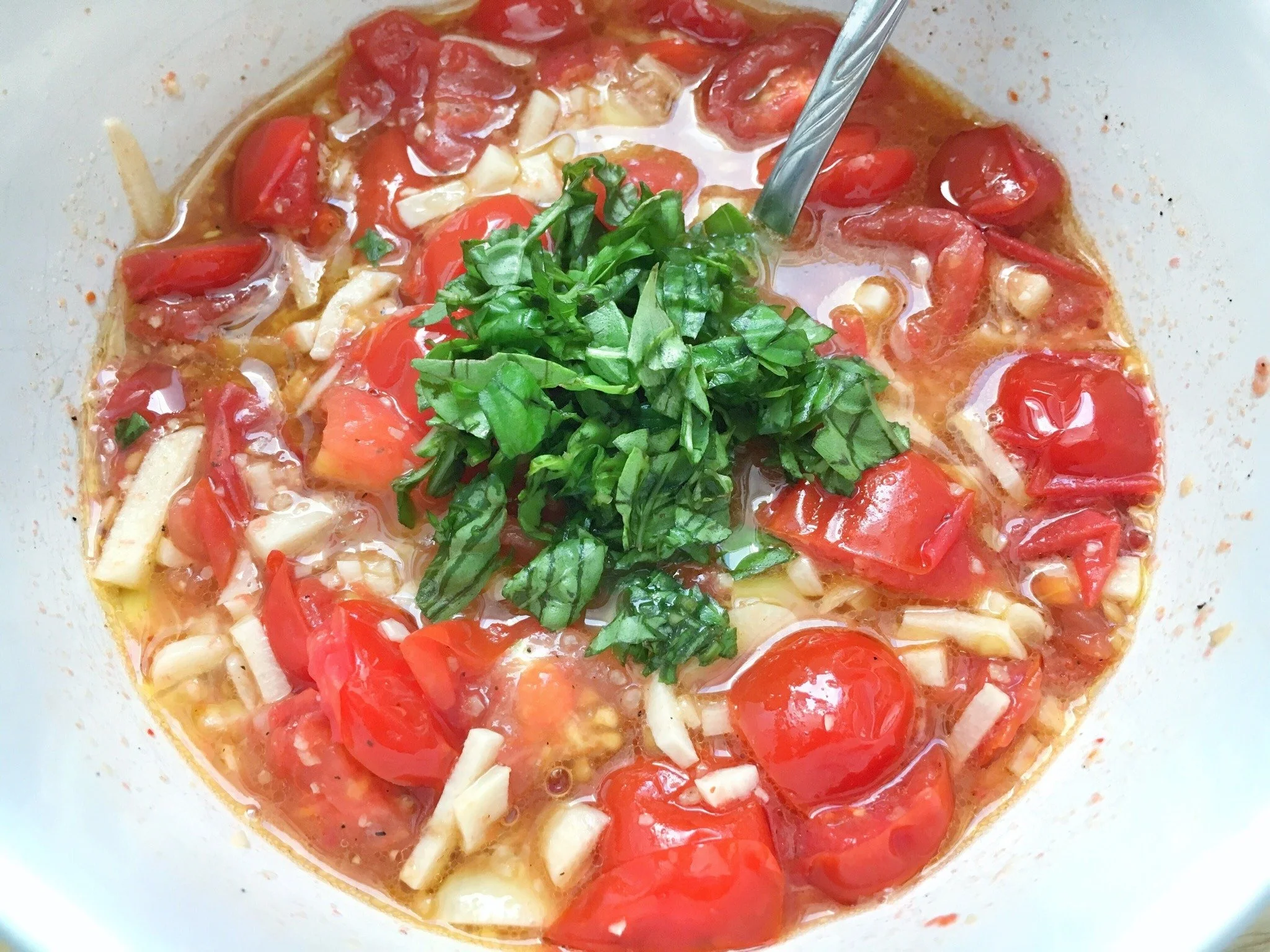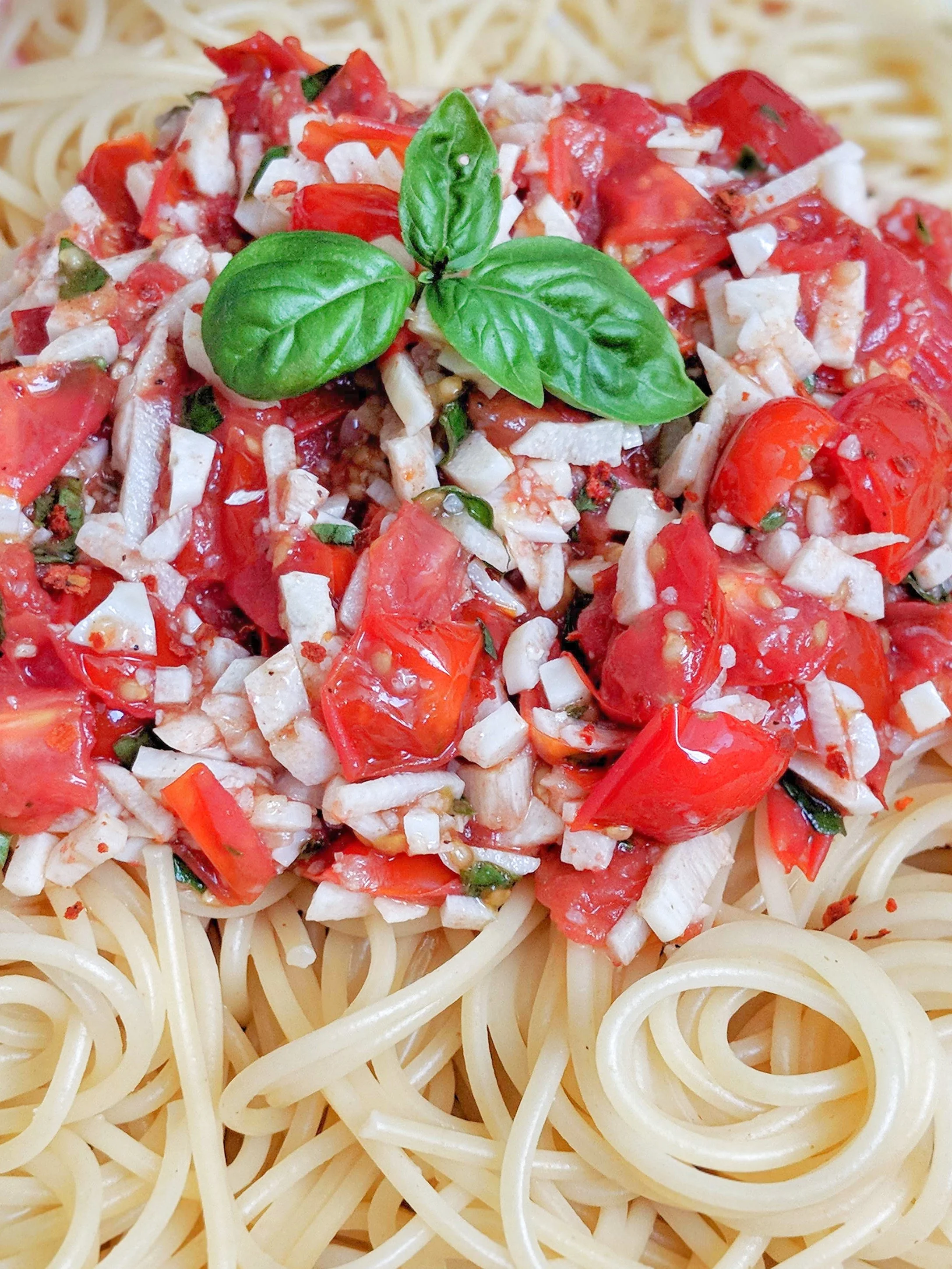 Die perfekte Sommerpasta: superschnell zubereitet, leicht und fruchtig mit genau der richtigen Schärfe. Wenn du Knoblauch genauso heiß und innig liebst wie ich, wird das bestimmt bald dein neues Lieblings-Pastarezept. ❤️♡💚