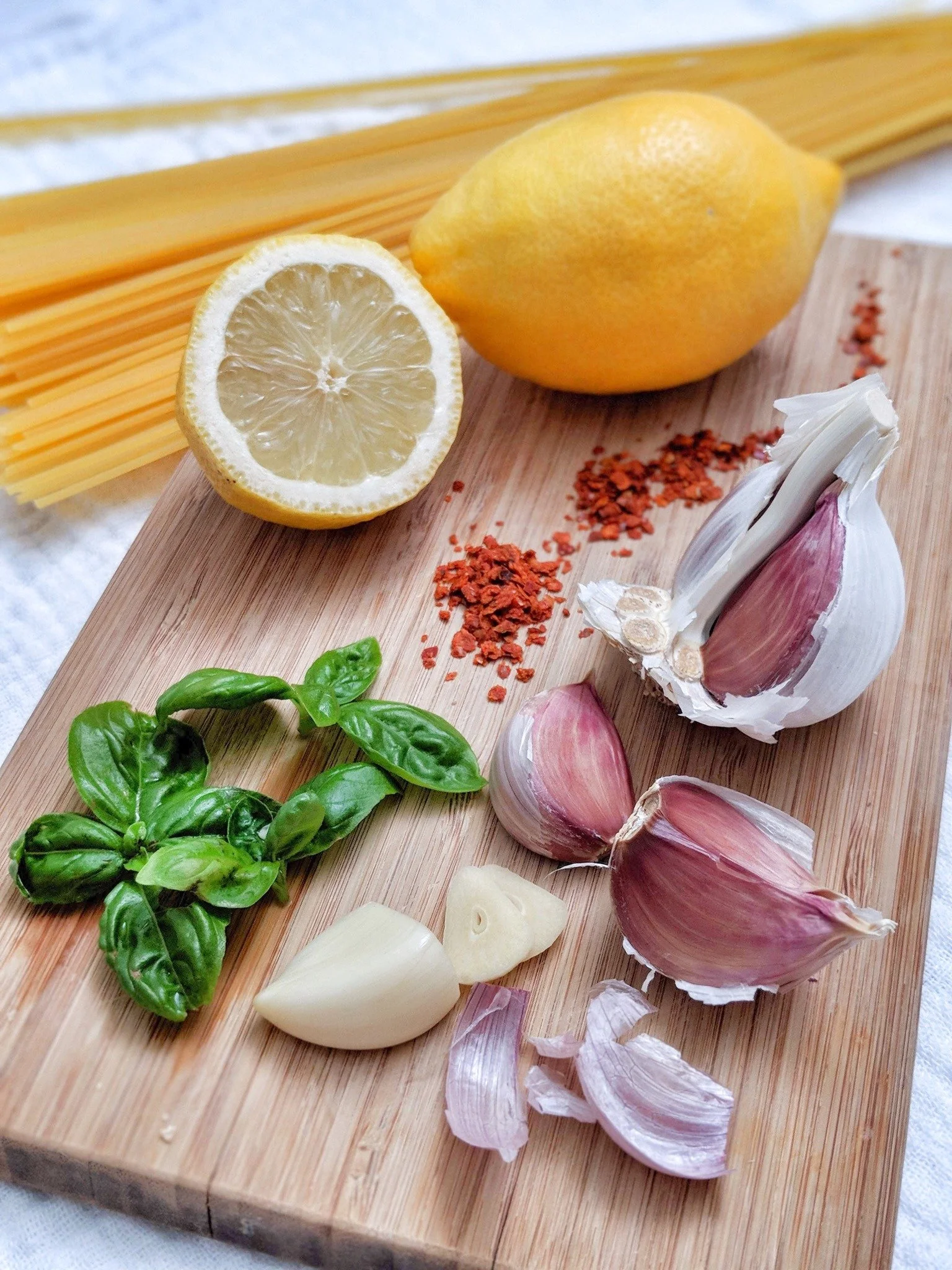 Zitronen-Knoblauch-Spaghetti mit Chilinote