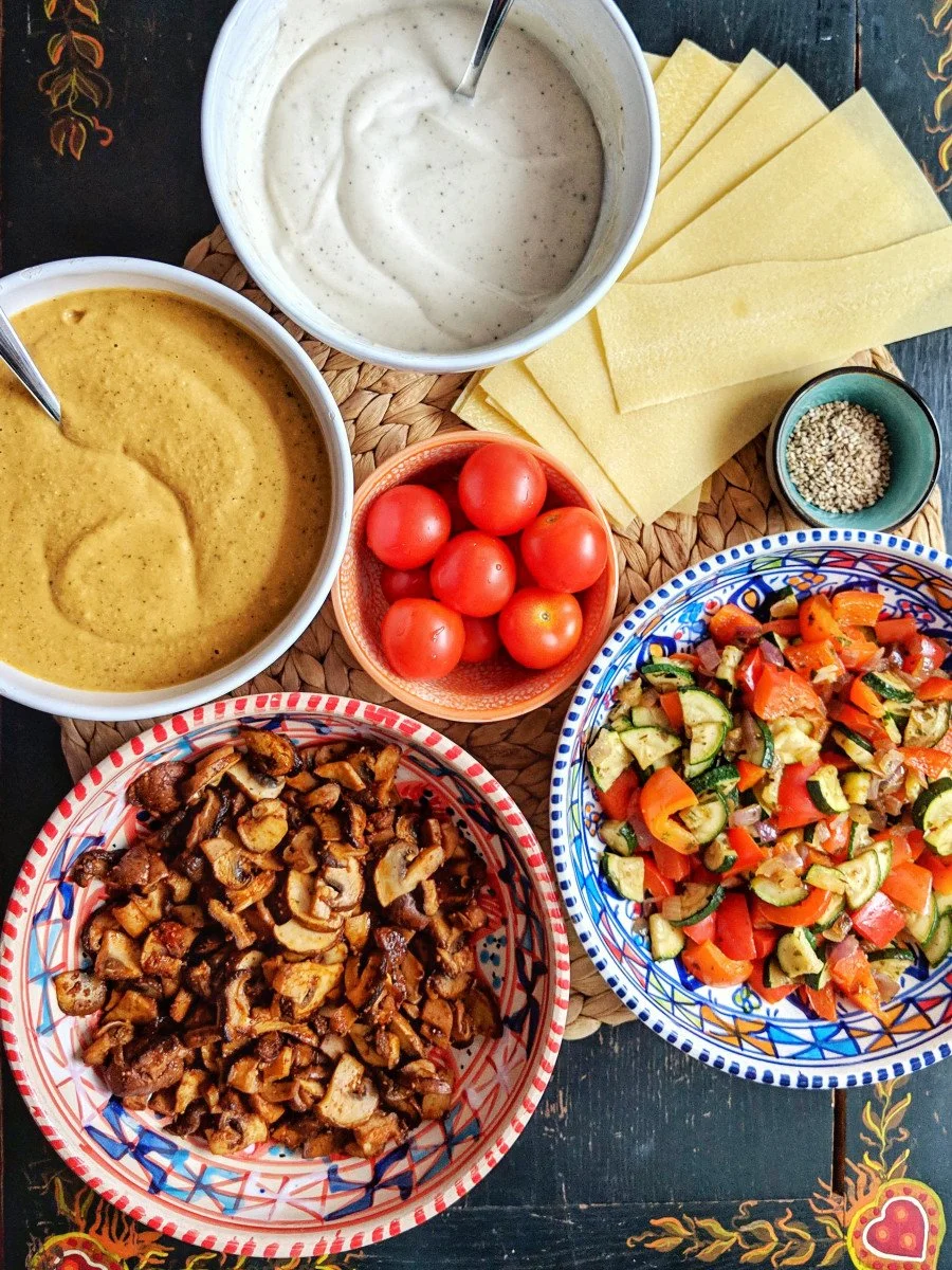 Wie jede komplett selbstgemachte Lasagne ist auch diese hier etwas zeitaufwendig. Um Zeit zu sparen, kannst du die Sauce, das Gemüse und die Pilze auch wunderbar am Vorabend vorbereiten. Dann brauchst du, wenn dein Magen knurrt und es losgehen soll, die Lasagne nur schnell zu schichten, während der Ofen vorheizt und eine halbe Stunde später steht einer genüsslichen Schlemmerei nichts mehr im Wege.