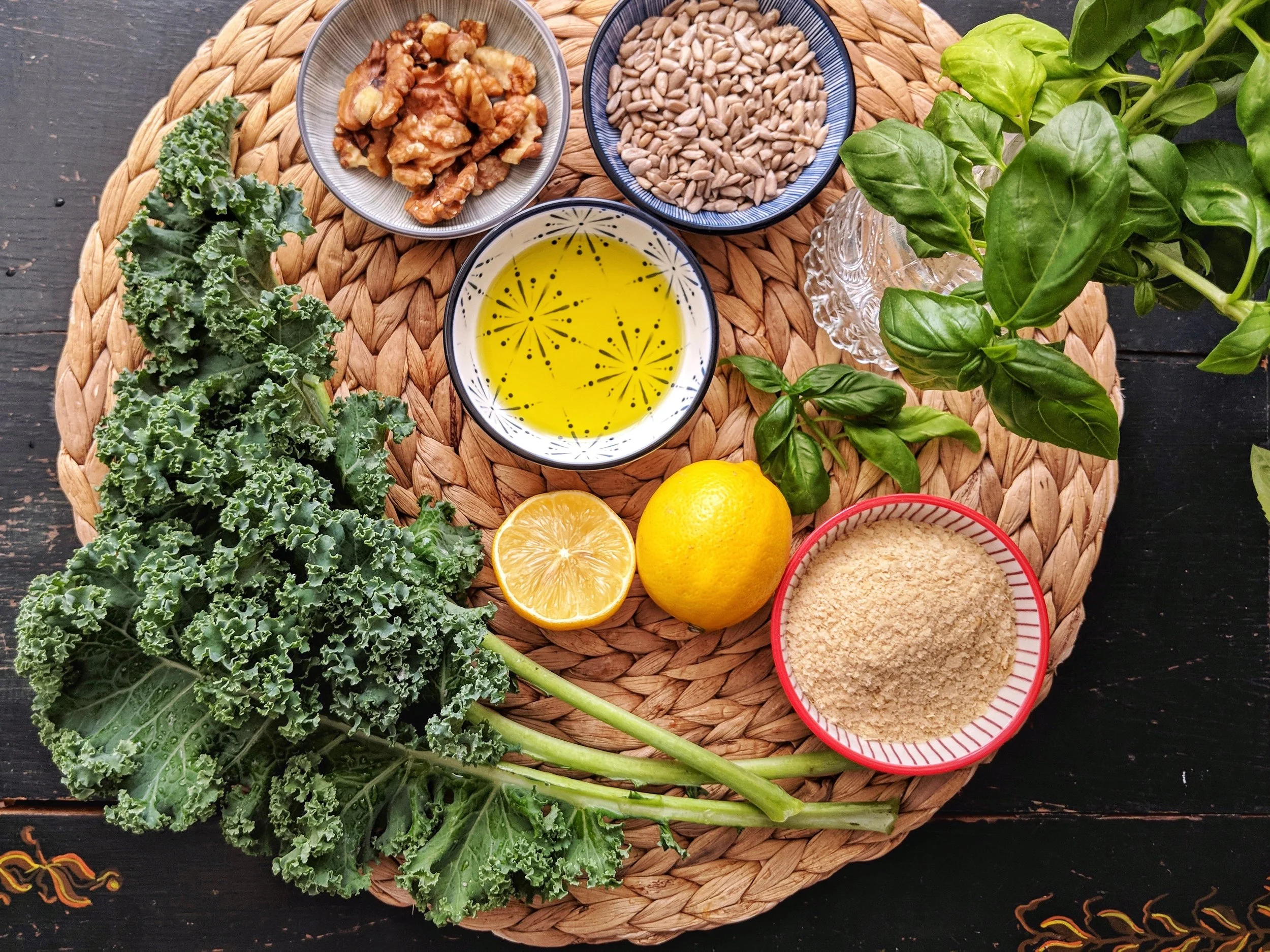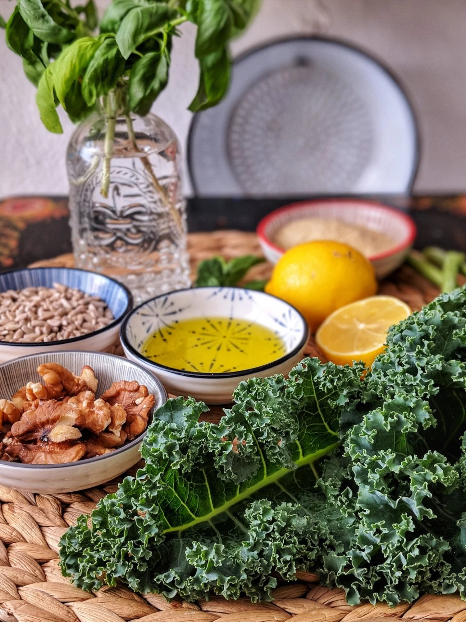 Pesto mal ganz anders - vegan und mit frischem Grünkohl, Walnüssen & Sonnenblumenkernen.