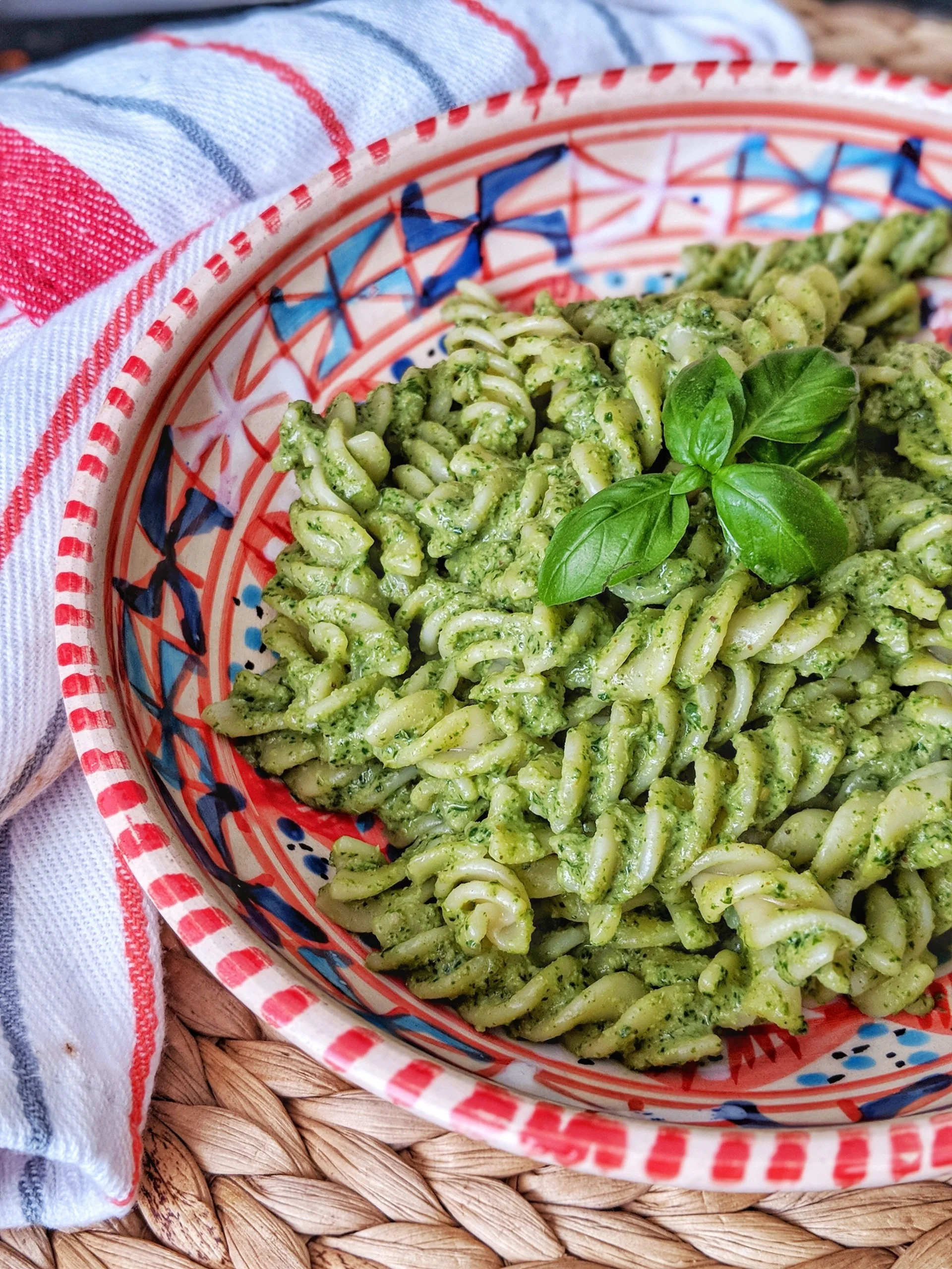 Und da ich den Großteil des Olivenöls, das sonst ins Pesto wandert, durch Pflanzenmilch ersetzt habe, ist es quasi eine leichte Variante des klassischen Pestos.