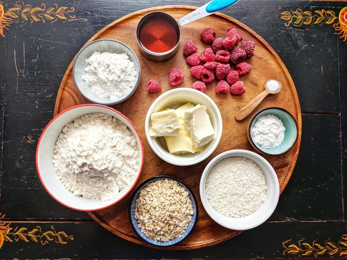 Zutaten für veganen Himbeer-Streuselkuchen